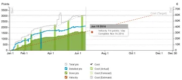 Dé prioridad a las historias y tareas usando drag-n’-drop. Obtenga historias de muchos productos y proyectos en una sola iteración. Ver el esfuerzo estimado total restante y gastado de la quema. Establecer dependencias entre historias. Proporcione acceso de solo lectura para los interesados externos.