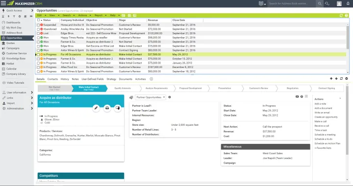 Maximizer CRM es ideal para pequeñas y medianas empresas y es el mejor valor para una solución de CRM con todas las funciones. Es una solución completamente integrada de administración de ventas, servicio al cliente y marketing, accesible a través de múltiples plataformas: web, móvil y de escritorio.