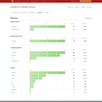Encuestas ilimitadas, respuestas ilimitadas. Utilice el editor de encuestas para crear encuestas de forma rápida y sencilla. Recopile respuestas a través de su sitio web, correo electrónico, dispositivo iOS o cuentas de redes sociales.